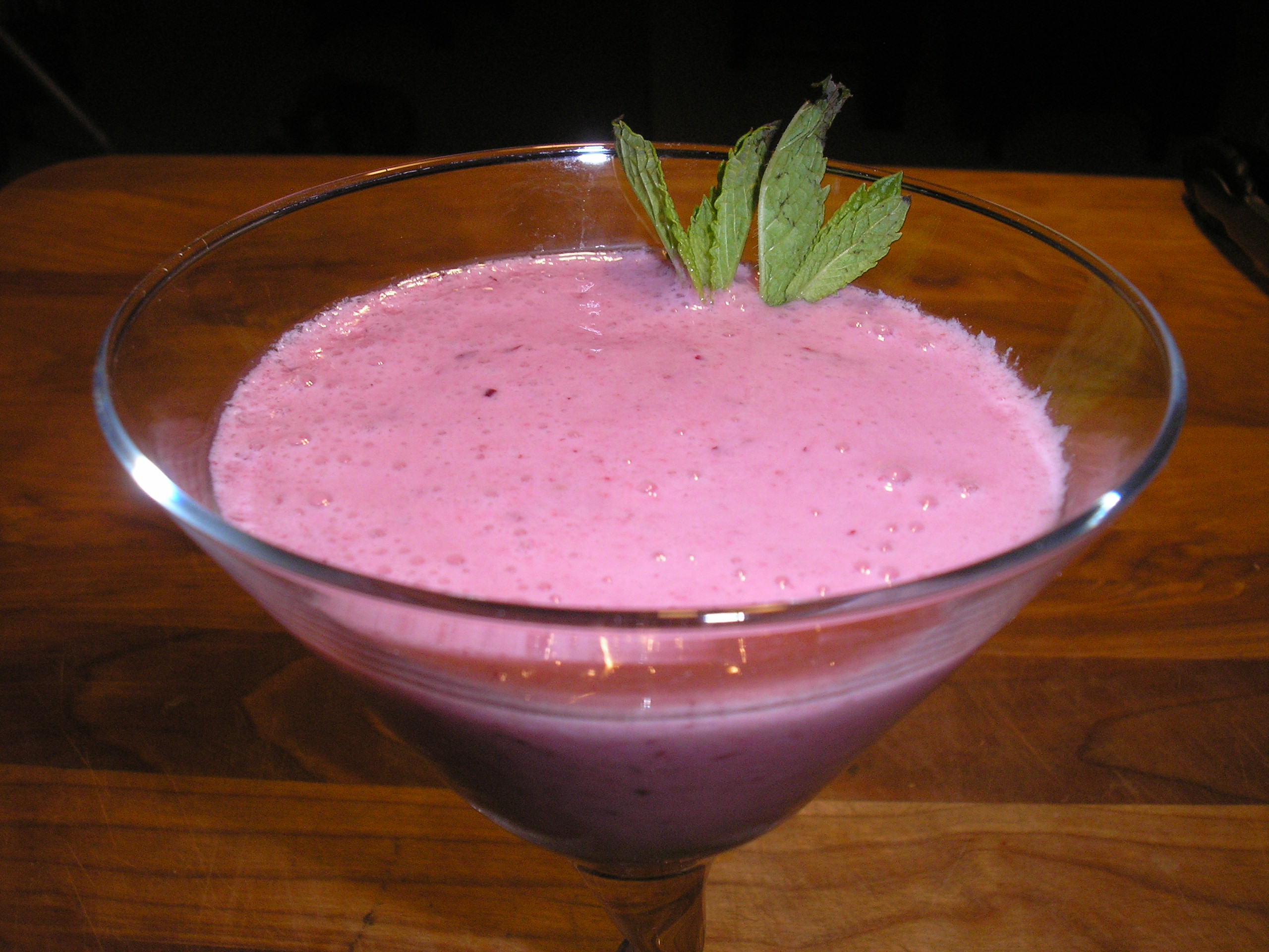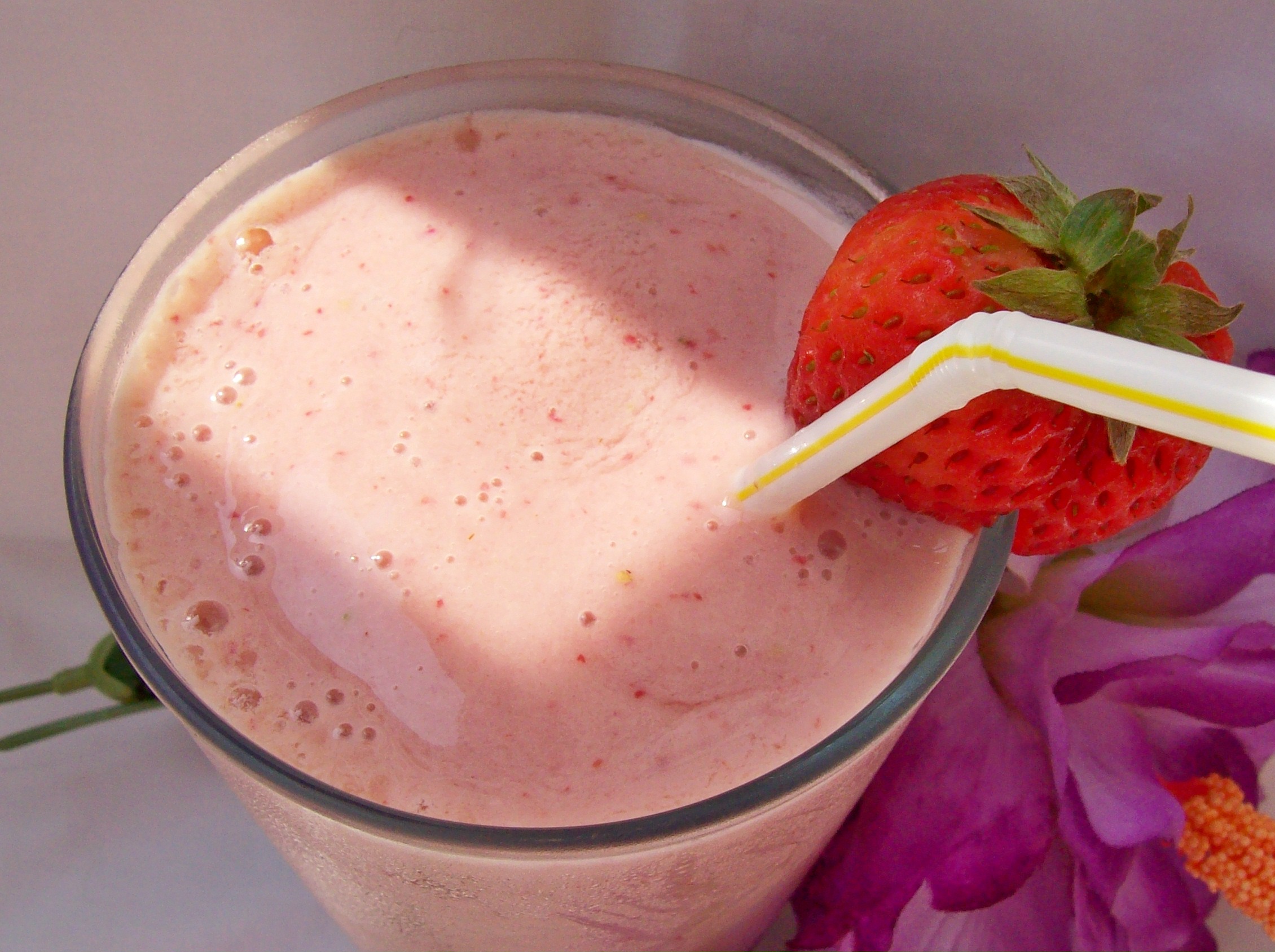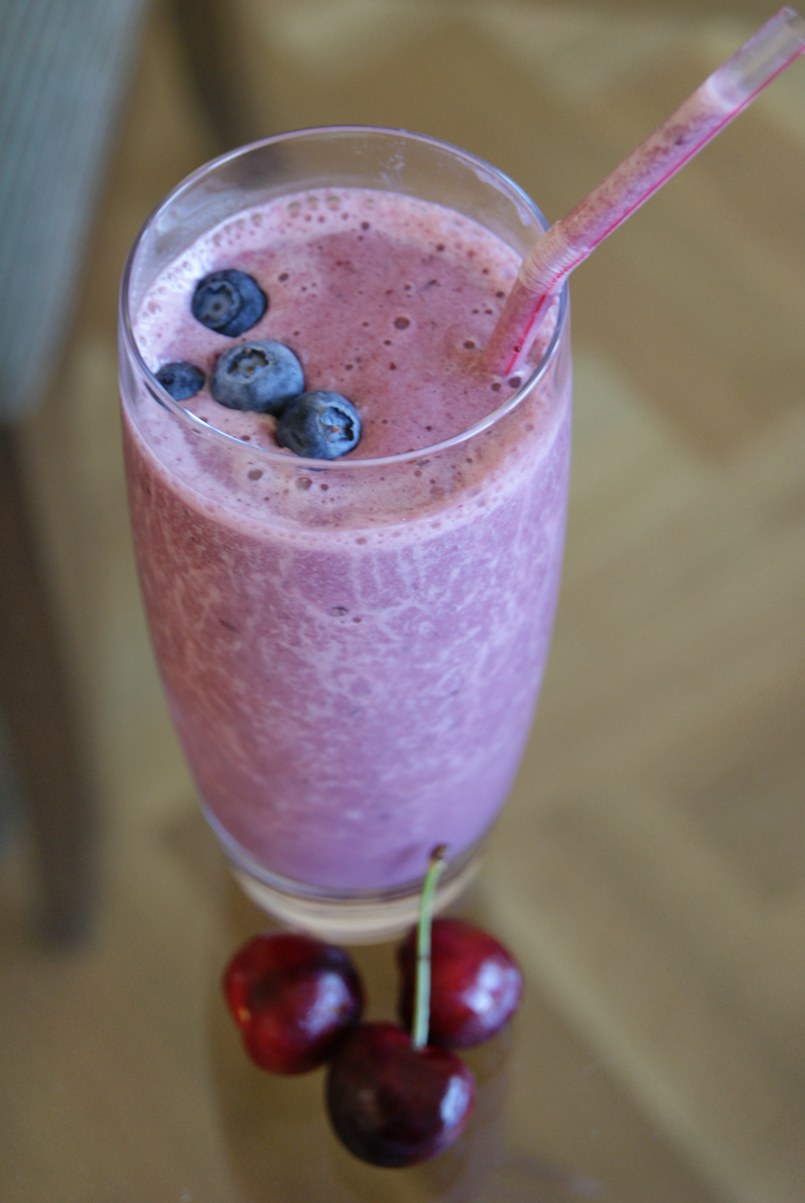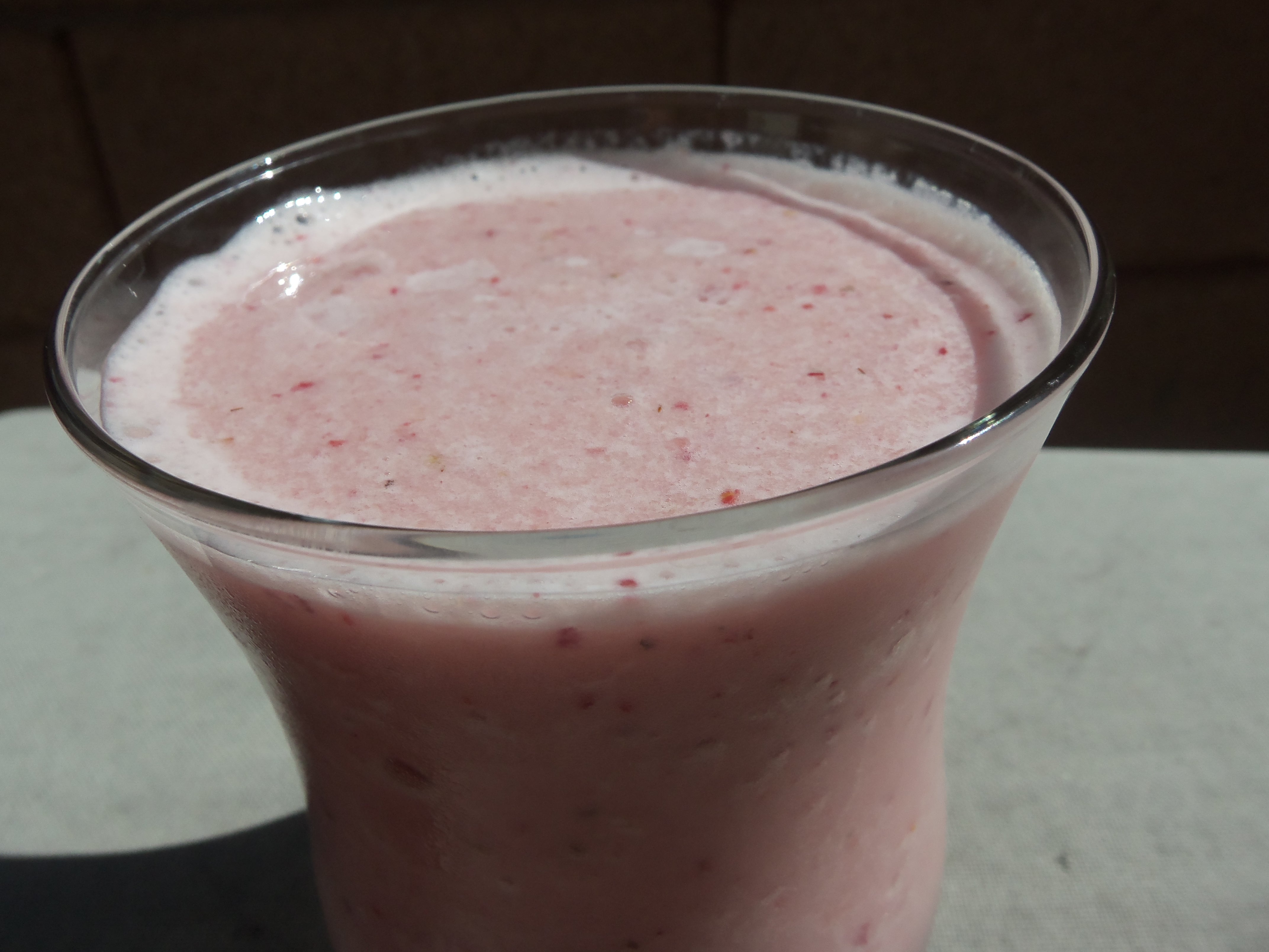2 cups frozen fruit (any kind) 2 1?2 cups milk 1?2 cup sugar 1 teaspoon vanilla 2 scoops frozen sherbet (any kind)