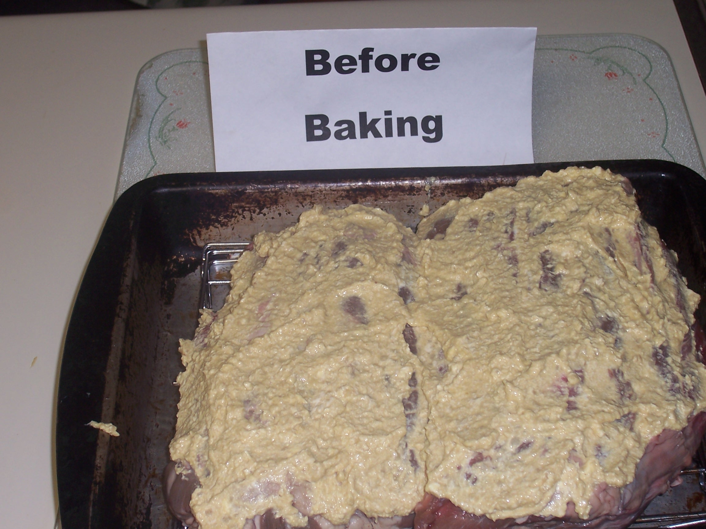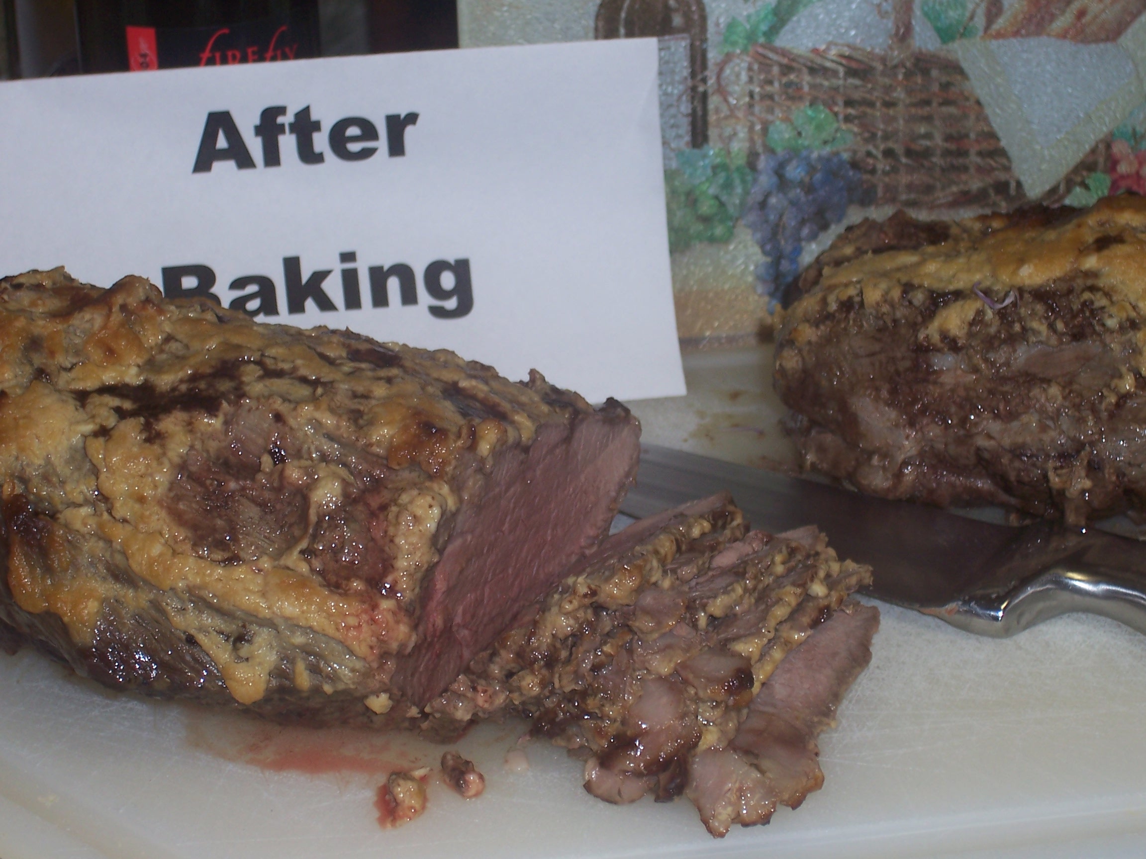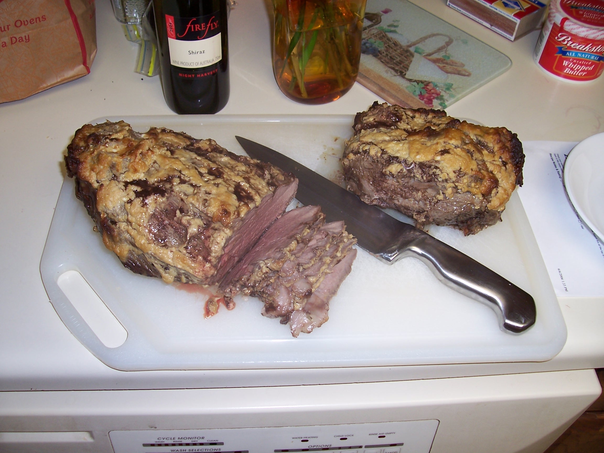 3 -5 lbs standing ribs or 3 -5 lbs rolled roast 2 tablespoons butter, at room temperature 2 tablespoons Dijon mustard 2 -3 teaspoons horseradish 1 clove garlic, minced