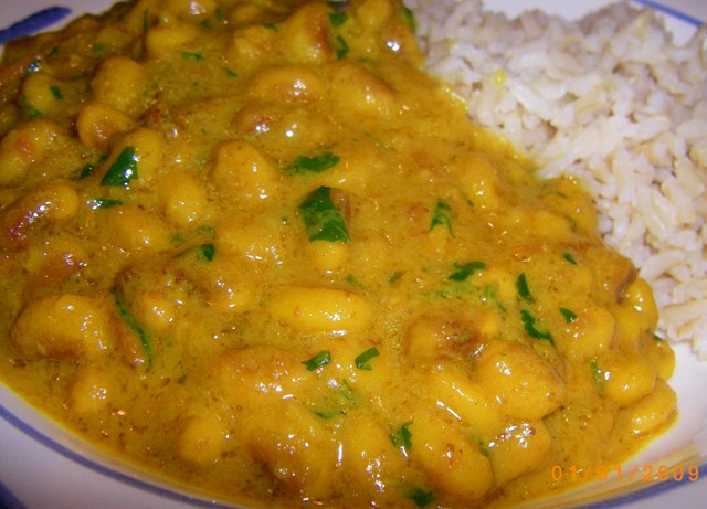 Drain your peas. Heat oil/ghee (allow to melt) in a medium heavy pot over medium heat and fry chiles, garlic, onion, and ginger for approx 6 minutes. Add your curry powder/garam masala, turmeric and cumin, and then add the tomatoes. Cook for approximately 3 minutes until it begins to thicken and add your peas and salt to taste, along with 4 cups of water. Allow water to boil and then reduce your heat, cover and cook for approximately 2 hours until your peas are done and the sauce is nice and thick. After the peas are done, fold in your yogurt (may wish to use a little more or little less to your tastes) and cilantro, and serve. This goes well with rice or with chappati/roti. Garnish with minced cilantro.