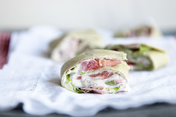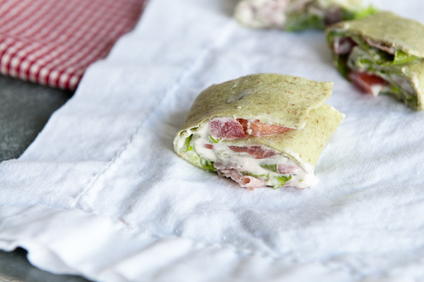 4 ounces softened cream cheese 1?2 cup light mayonnaise 1?4 cup finely chopped sun-dried tomato packed in oil 6 slices cooked bacon or 6 slices cooked turkey bacon, crumbled 3 (9 inch) spinach tortillas or 27 inches tomato tortillas 1 cup chopped Italian plum tomato, seeded 1 1?2 cups romaine lettuce, shredded