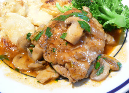 This easy BRAISED CHICKEN THIGHS WITH BUTTON MUSHROOMS Recipe. Step-by-Step. is perfect for busy families. Comes together quickly with a few staple ingredients!