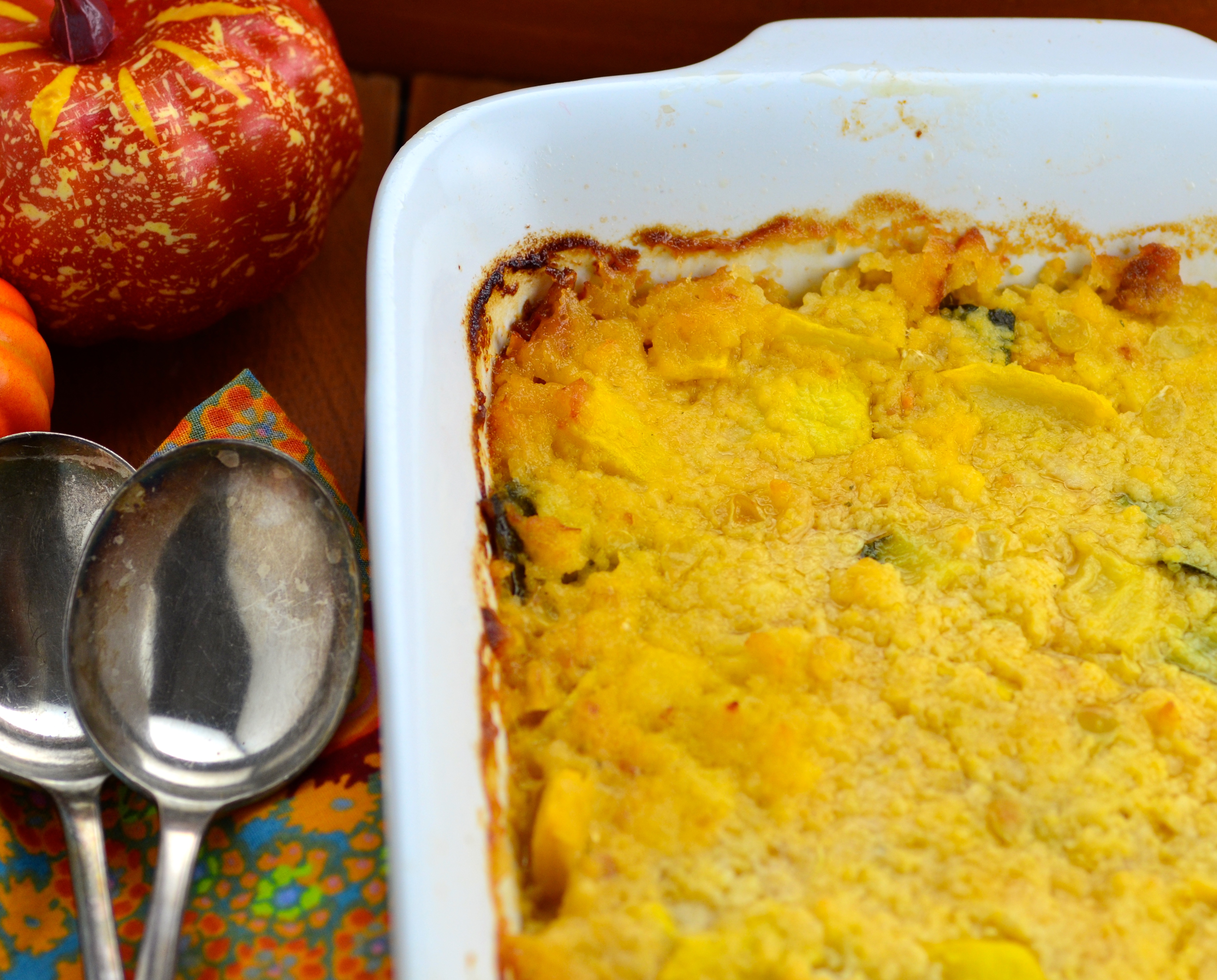 4 1?2 cups zucchini, diced 4 1?2 cups yellow squash, diced 1 1?2 cups yellow onions, chopped 1 (6 ounce) box Jiffy corn muffin mix 3?4 cup butter 8 ounces cheddar cheese 3 chicken bouillon cubes 1 teaspoon garlic, minced 1 teaspoon salt 1?2 teaspoon ground pepper 1?2 teaspoon thyme 1 tablespoon parsley, chopped