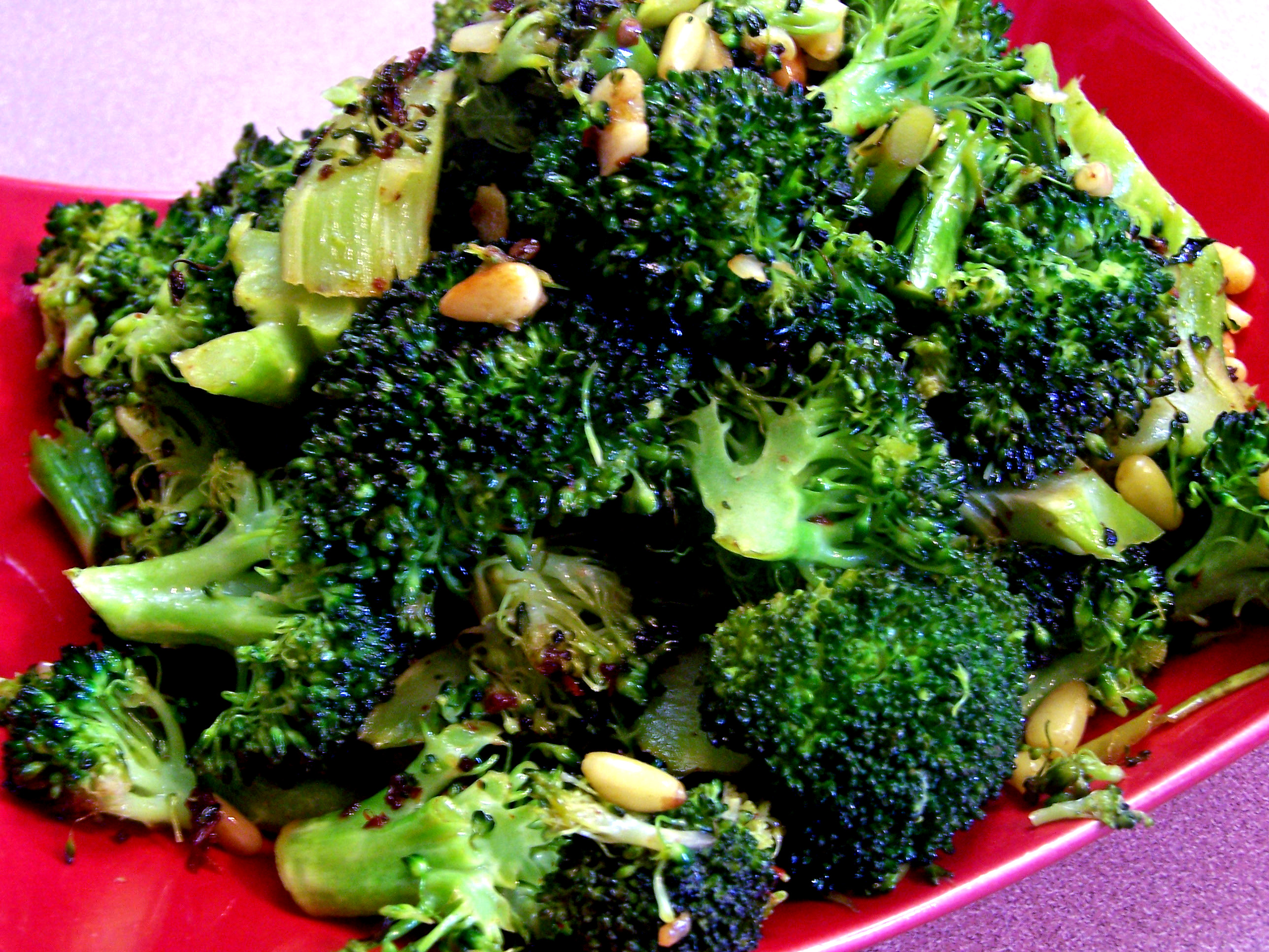 This easy BROCCOLI ROASTED WITH GARLIC, CHIPOTLE PEPPERS AND PINE NUTS Recipe. Step-by-Step. is perfect for busy families. Comes together quickly with a few staple ingredients!