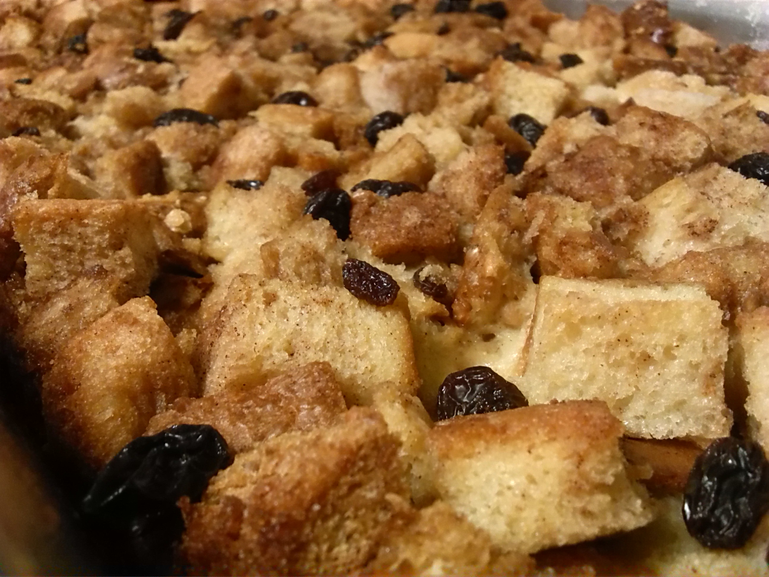 Cover raisins with brandy or water. Set aside. Melt butter or margarine. Break up bread, set aside. Combine brown sugar, cinnamon, allspice. Reserve 3 tablespoons of this mixture for topping. Pour melted margarine on before you toss the bread crumbs. Your sugar mixture will stick better that way. Toss bread with remaining sugar mixture. Place 1/2 of bread mixture in a lightly greased 1 1/2 quart baking dish. Drain raisins, place 1/2 raisins over bread crumbs. Repeat layers. Combine egg, salt, and vanilla in a bowl. Beat for 1 minute. Add milk slowly. Pour over mix in dish. Let stand for 5 minutes. Sprinkle reserved sugar mix on top. Bake at 325F for 45 to 50 minutes.