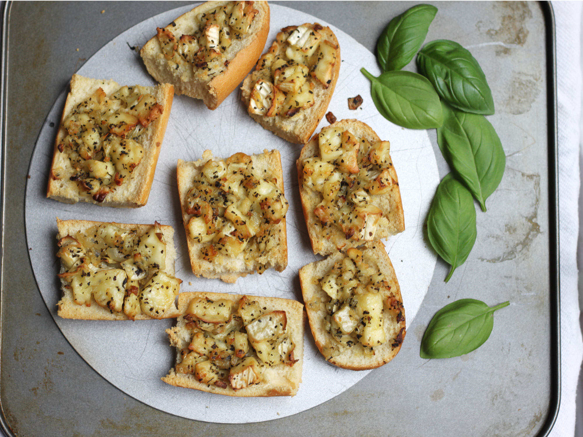 1?4 lb butter 6 ounces brie cheese 1?4 cup onion, diced 1?4 teaspoon basil 1 loaf French bread