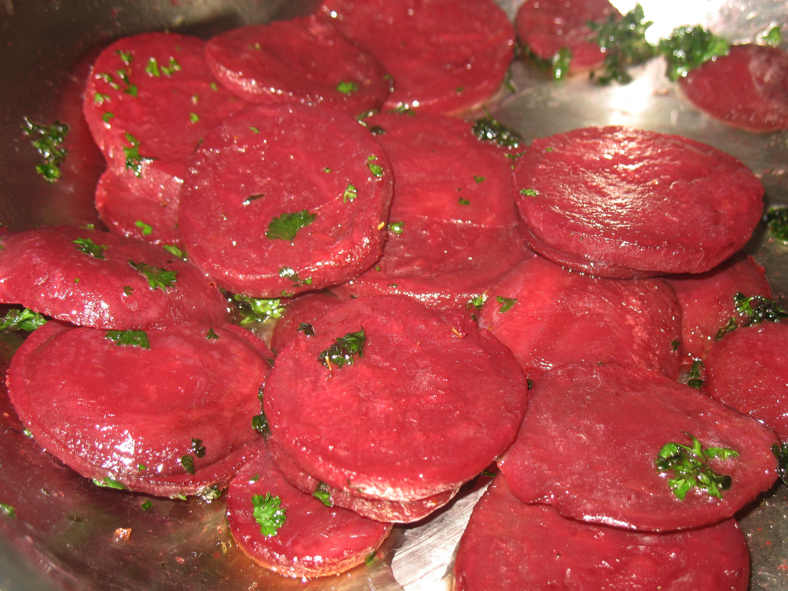 In a medium skillet over moderate heat melt 2 tablespoons butter, add parsley and sliced beets. Warm through, season with salt and serve.