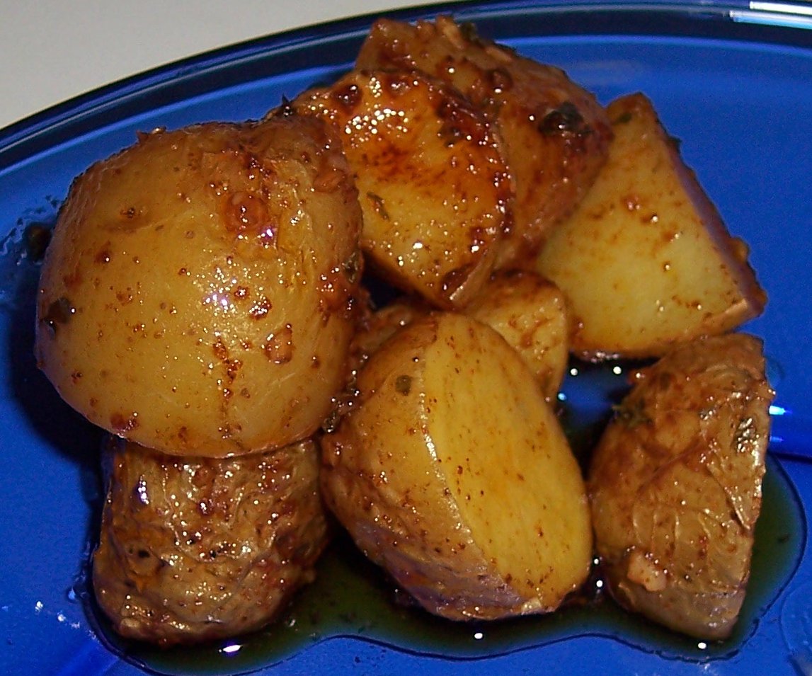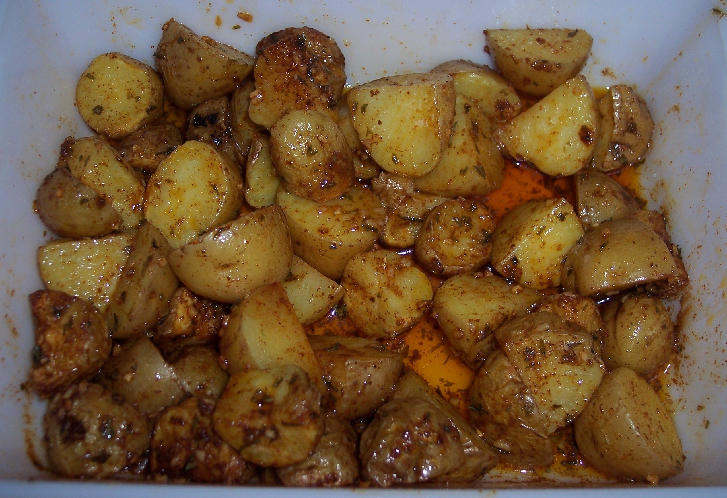 6 small red potatoes, quartered 1?4 cup butter, melted 1 teaspoon seasoning salt 1 teaspoon paprika 1 teaspoon dried parsley flakes 1 teaspoon minced garlic